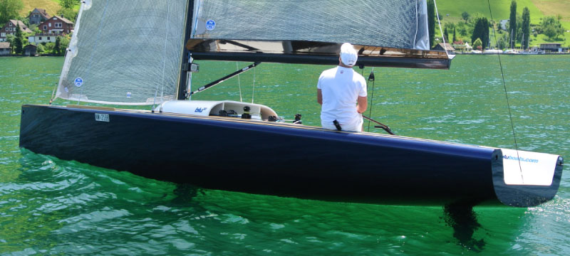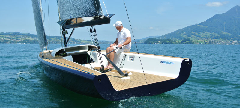 The blu30 has been created on the drawing board of Christian Bolinger in collaboration with America's Cup sailor Christian Scherrer. The design brief described a modern daysailor optimized for short crew and single handed sailing.